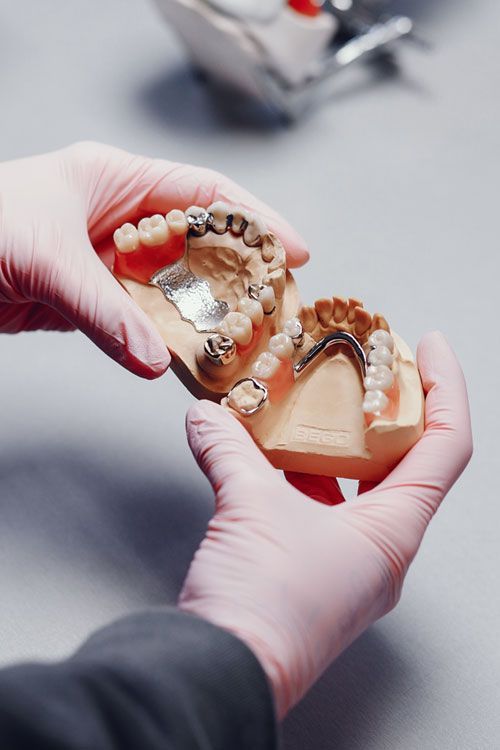 Rehabilitamos piezas perdidas con prótesis fijas o removibles diseñadas a la medida.