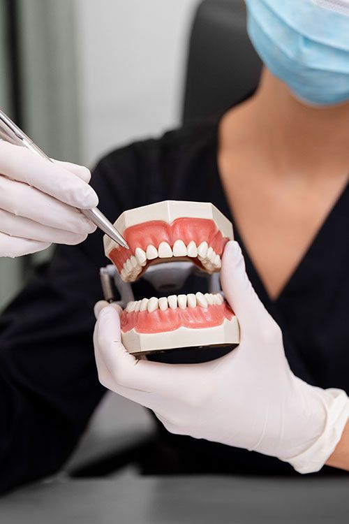 Tratamos enfermedades de encías y rehabilitamos dientes perdidos con implantes dentales seguros y funcionales.